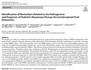 소아 모야모야병 조기 진단 가능성을 높이는 새로운 바이오마커 ‘SLITRK1’ 가 발견됐다. 또한 뇌경색, 수술 예후 등 모야모야병의 임상 특성과 연관된 단백질도 확인돼, 난치성 질환인 모야모야병 치료에 새로운 패러다임을 제시할 것으로 기대된다.서울대병원 소아신경외과 김승기 교수와 소아암·희귀질환지원사업단 최승아·융합의학과 ...