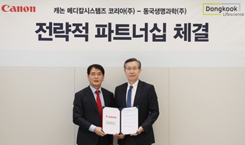 캐논 메디칼시스템즈 코리아㈜ (대표이사 김영준, 이하 캐논 메디칼)가 동국생명과학 (대표이사 박재원)과 전략적 파트너십을 체결하고, 캐논 메디칼의 영상 진단 장비 국내 공급 확대에 나선다.