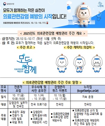 질병관리청이 10월 13일부터 17일까지 ‘2025년 의료관련감염 예방관리 주간’을 운영한다.