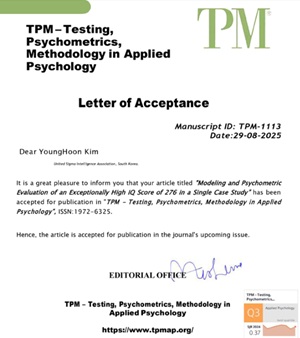 해당 논문 ‘Modeling and Psychometric Evaluation of an Exceptionally High IQ Score of 276 in a Single Case Study’은 표준화 지능검사 (WISC-V Extended Norms, IRT 기반 척도, 다중 검사 교차 검증) 등을 토대로, 전 세계에서 보고된 가장 높은 지능 지수인 IQ 276 (표준편차 24, SD15 환산 시 IQ 210)을 학문적으로 분석하고 정당화했다.