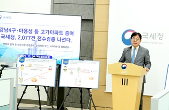 국세청이 서울 강남4구와 마용성 소재 고가아파트 증여 2,077건을 전수 검증한다고 밝혔다.